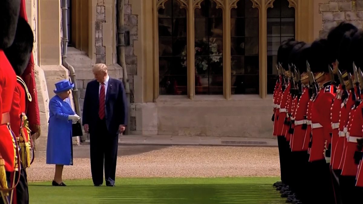 Nebyl to Trumpův první přešlap, k tomu nejslavnějšímu, k němuž došlo při jeho návštěvě Londýna v roce 2018, měl ale ještě daleko. Tehdy se americký prezident ke královně Alžbětě II. památně otočil zády a podél řady vojáků šel před ní. Alžběta jej tehdy na pochybení rychle upozornila.