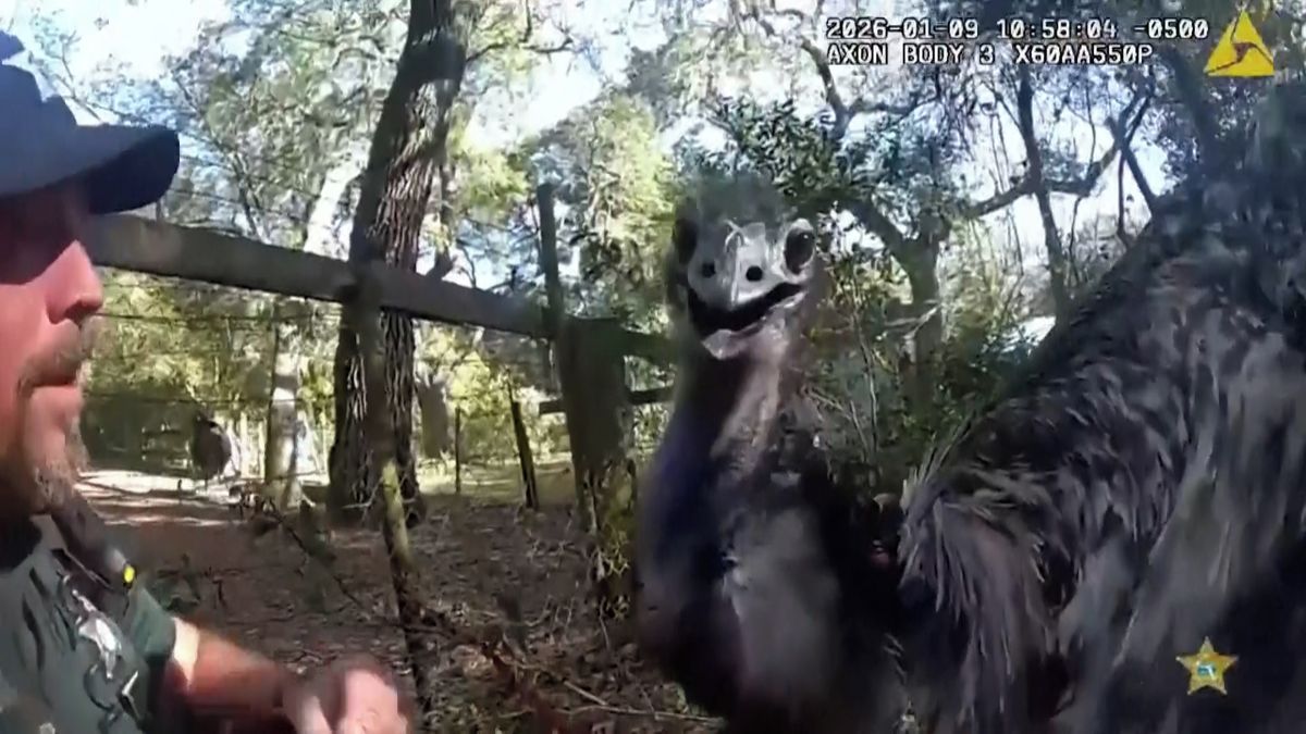 Pokusy o uklidnění selhaly, ale naštěstí se objevil dobrodinec, který se nabídl, že Tinu podrží, dokud si Stephanie nedojde na farmu pro nákladní auto. Do něj pak pštrosici na útěku naložila a konečně dovezla domů.
