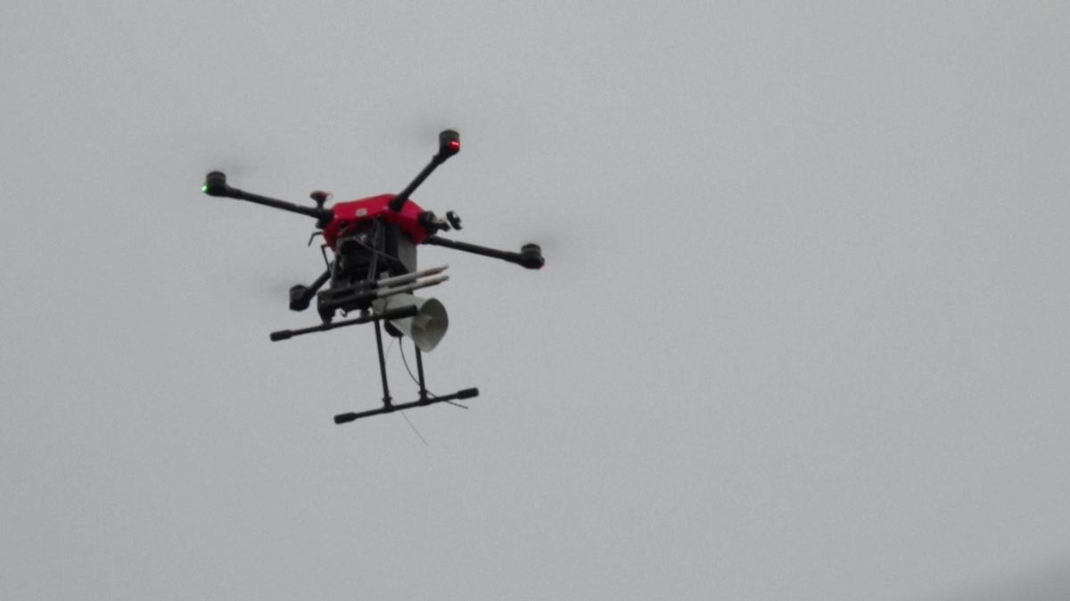 Dron je vybaven megafonem, ze kterého se line psí štěkot