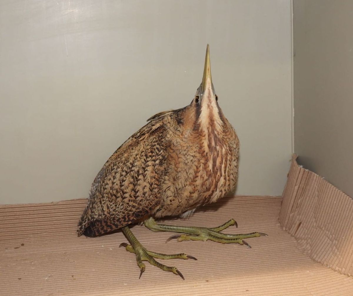 Vyčerpaného bukače velkého přijali ochránci přírody do své péče zhruba v polovině února.