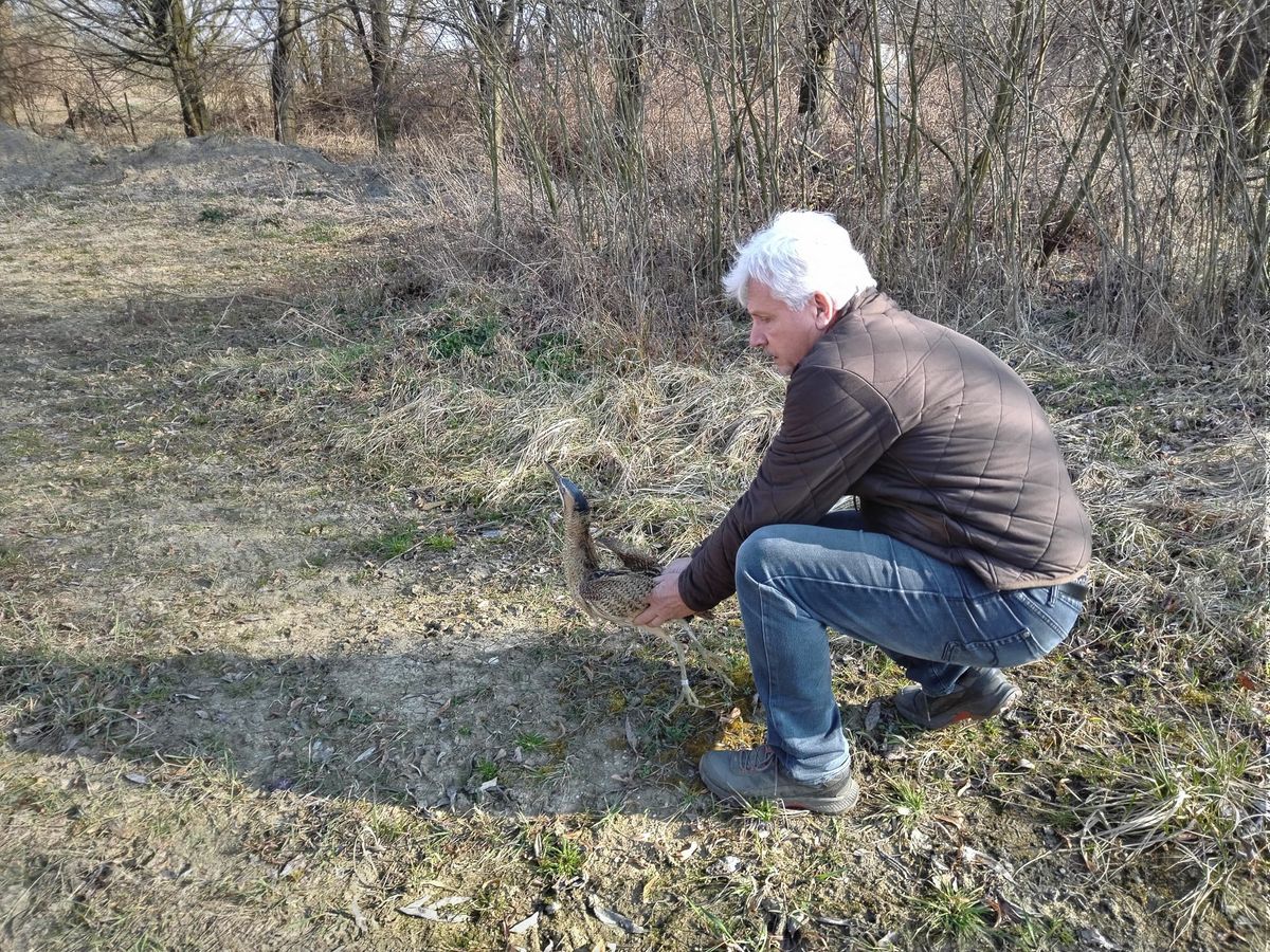 Vedoucí stanice Petr Orel při vypouštění bukače do volné přírody
