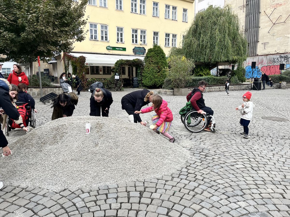 Radnice Brno-střed, která akci připravuje spolu s neziskovou organizací Renadi a Ligou vozíčkářů, nechala náměstí vyčistit a navezla sem tunu štěrku, kterou lidé po náměstí roznesli. „Lidé dostanou pro tuto příležitost vyrobené kelímky. Do těch naberou štěrk a nasypou ho do spár tak, aby se tam dostali pohodlně vozíčkáři. Vjet sem teď je docela problém,“ řekl mluvčí radnice Brno-střed Michal Šťastný.