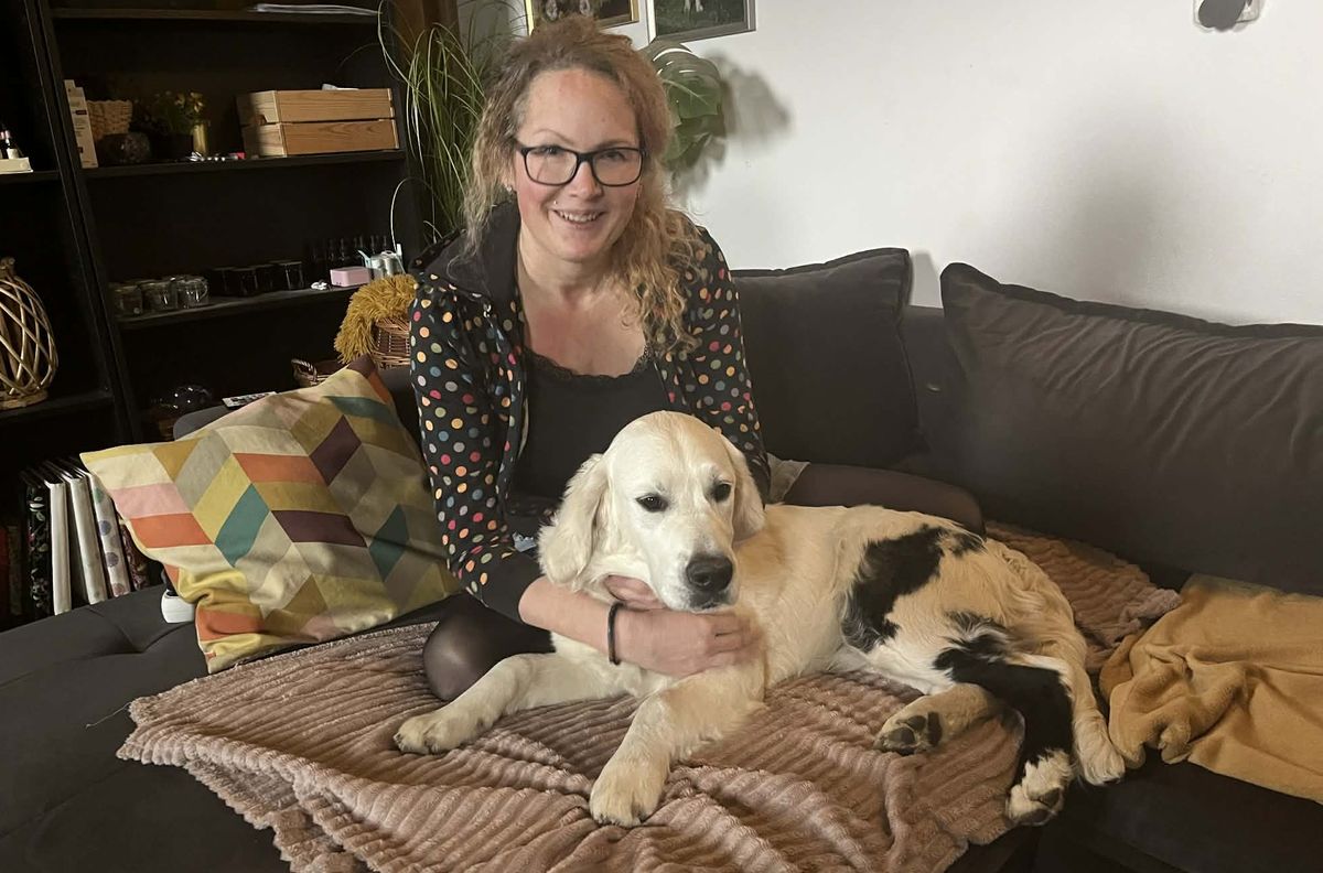 Petra Hoch Nová s Edíkem na jeho oblíbeném gauči