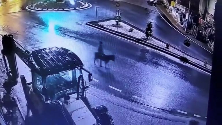 Na záběrech, které zprostředkovala agentura Reuters, je vidět, jak se muž dostal do prodejny s pomocí vysokozdvižného vozíku, jímž zvedl roletu před vstupními dveřmi. Uvnitř převrátil pult s vystaveným zbožím a začal ze země sbírat šperky. Následně nasedl na osla a na jeho hřbetě se nočními ulicemi města vydal pryč z místa činu.
