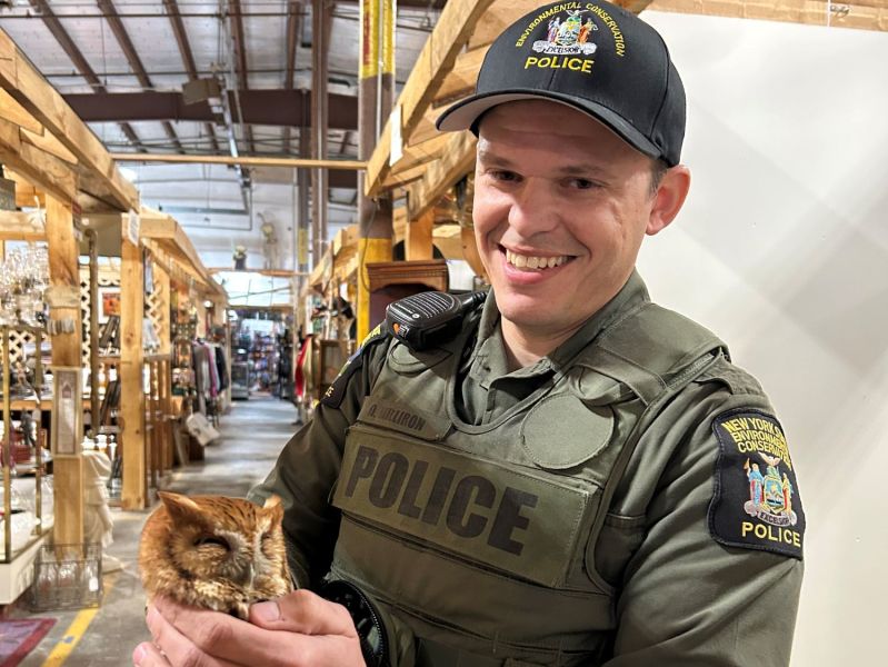 Již nikdy se asi nepodaří zjistit, jak se sova dostala dovnitř, ale ven ji opatrně vynesl přivolaný pracovník odboru životního prostředí Darren Milliron a podle stránek jeho zaměstnavatele ji ani opatrné sejmutí z regálu neprobudilo.
