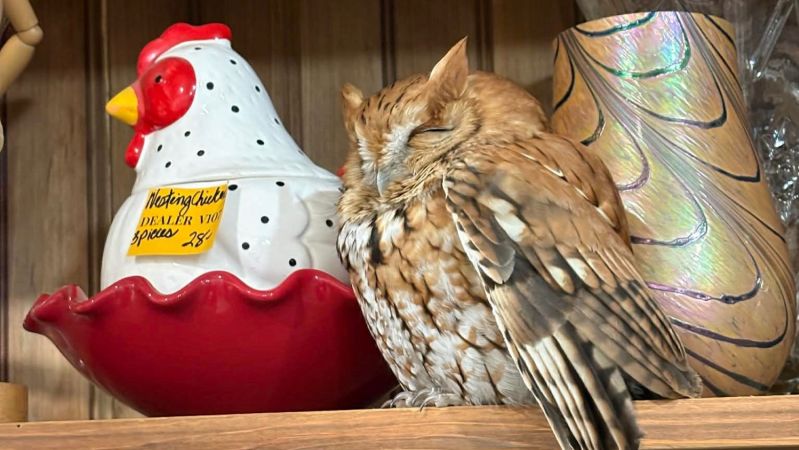 Lidé, kteří 21. února navštívili starožitnictví v menší obci Durham, jež leží v jižní části amerického státu New York, nevěděli, zda mají věřit vlastním očím, když na jedné z polic uviděli spící sovu.