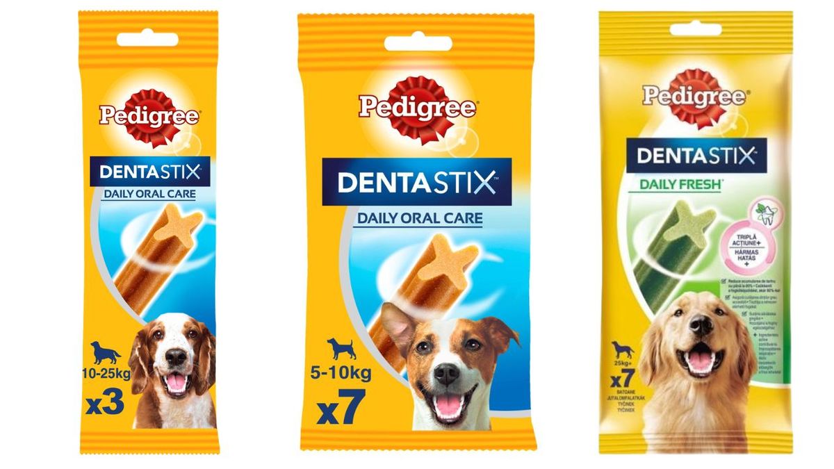Další možnost představují speciální pamlsky, které díky svému tvaru a struktuře pomáhají čistit chrup, jako jsou PEDIGREE DentaStix. Tyto pamlsky jsou důležitým doplňkem komplexní domácí péče o tlamu, protože spolu s čištěním zubů mohou pomoci výrazně snížit usazování plaku a tvorbu zubního kamene. „Kromě čištění může každodenní podávání speciálních pamlsků, jako je PEDIGREE® DentaStix, pomoci snížit tvorbu plaku a zubního kamene, a zvýšit tak kvalitu života psa na mnoho let. Díky skvělé chuti se pamlsky stávají příjemnou součástí běžného psího života. Vyrábíme je v různých velikostech, takže jsou vhodné pro psy napříč širokou škálou plemen,“ vysvětluje Orsolya Czégény ze společnosti Mars Pet Nutrition.