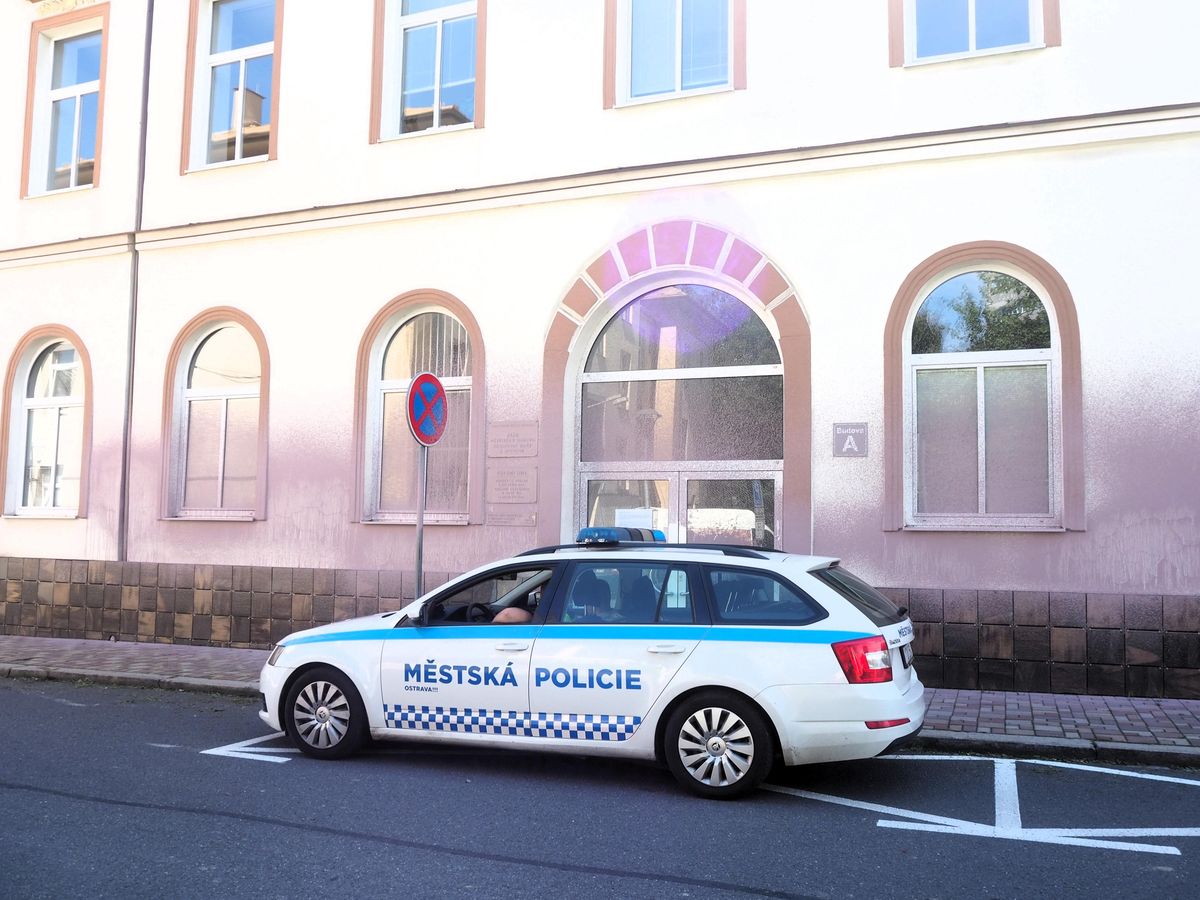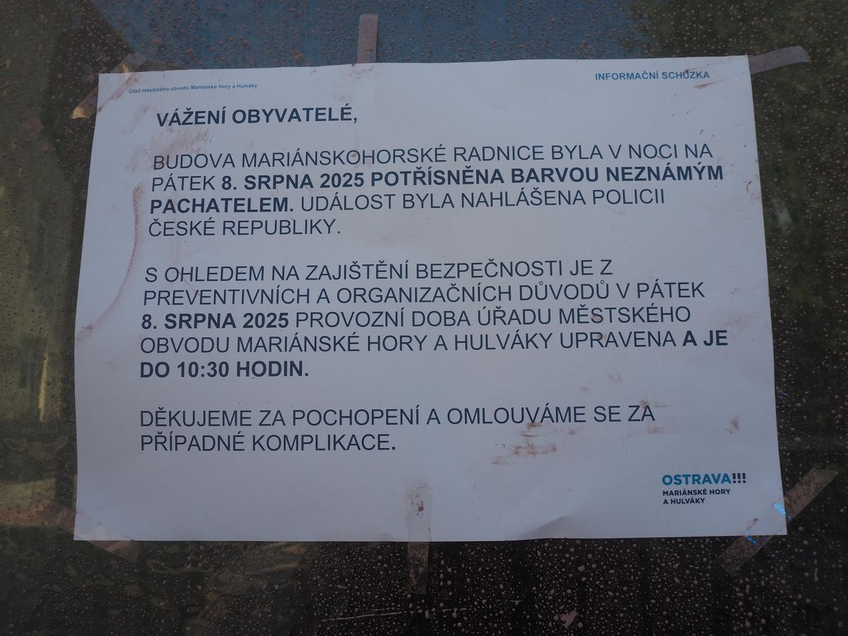 Barvou poničenou radnici v ostravských Mariánských Horách hlídala v pátek policie.