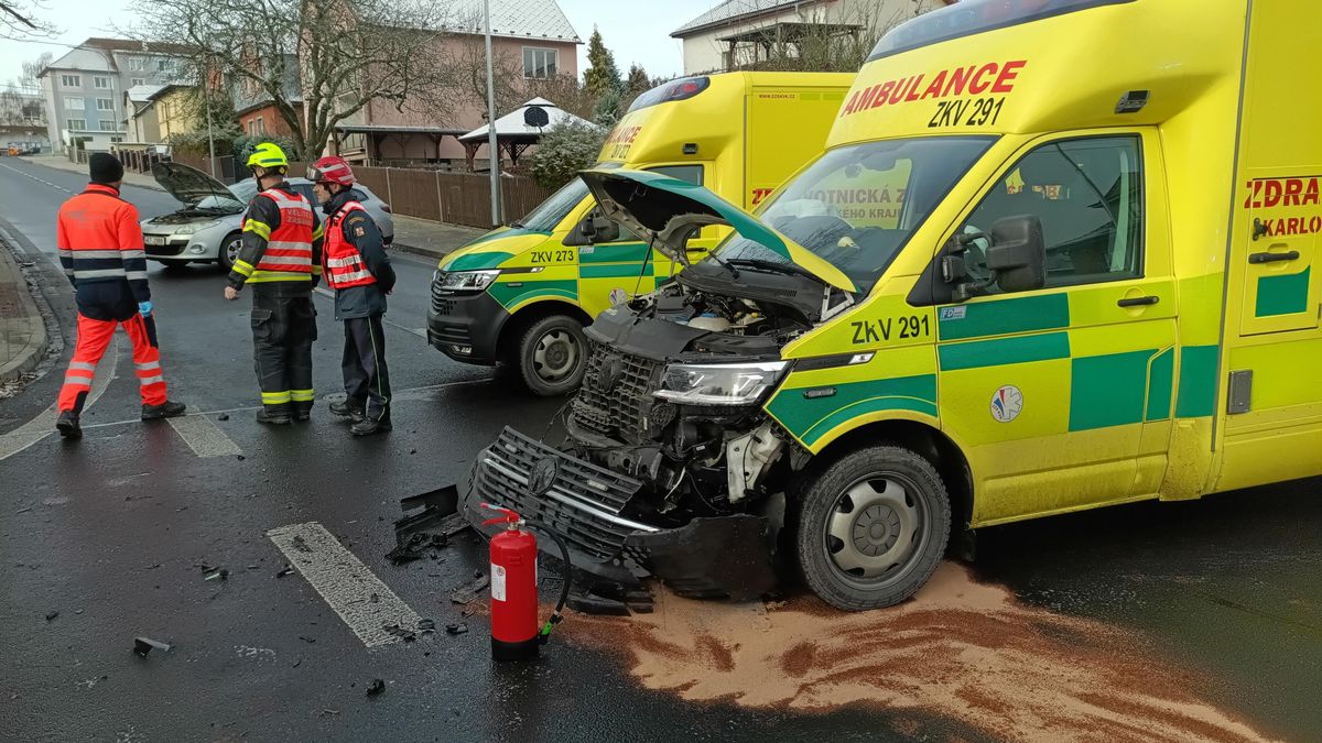 Podle mluvčí záchranné služby Simony Kratochvílové jel vůz záchranné služby k zásahu u pacienta. Zraněný byl řidič osobního auta, ročník 2006, a čtyři nezletilé osoby ve věku okolo osmi let. „Všichni měli ale jen lehká zranění, se kterými byli převezeni do chebské nemocnice,“ uvedla Kratochvílová. Z posádky záchranné služby byla lehce zraněna jedna záchranářka.
