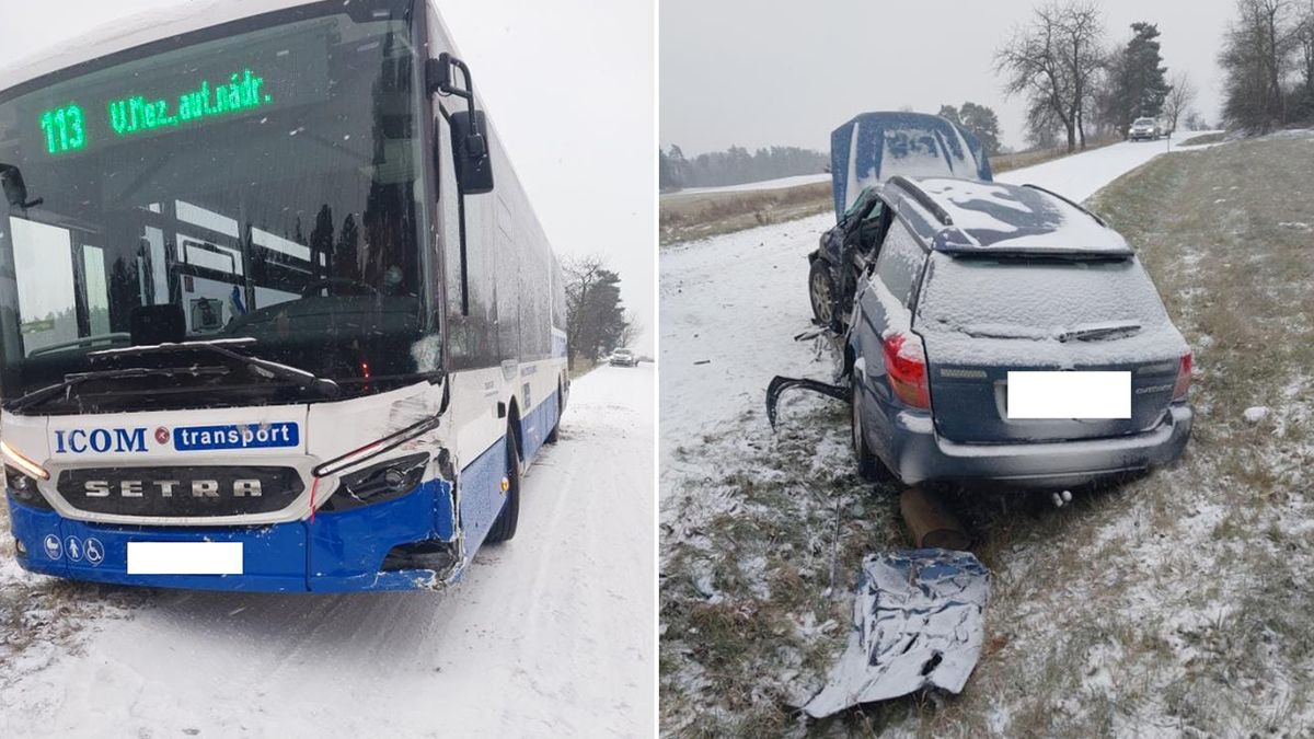 „V autobuse bylo jedenáct cestujících. Řidič osobního auta se lehce zranil. Vozovka je průjezdná,“ uvedla nejdřív policejní mluvčí Dana Čírtková.