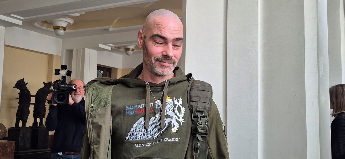 Pětačtyřicetiletý muž, kterému za podporu a propagaci terorismu a službu v cizích ozbrojených silách hrozil až 12letý trest, přišel v úterý k vrchnímu soudu v zelené mikině s nápisy připomínající muniční iniciativu pro Ukrajinu. Na levé paži měl českou a ukrajinskou vlajku, na pravé pak lebku s ukrajinskými barvami.