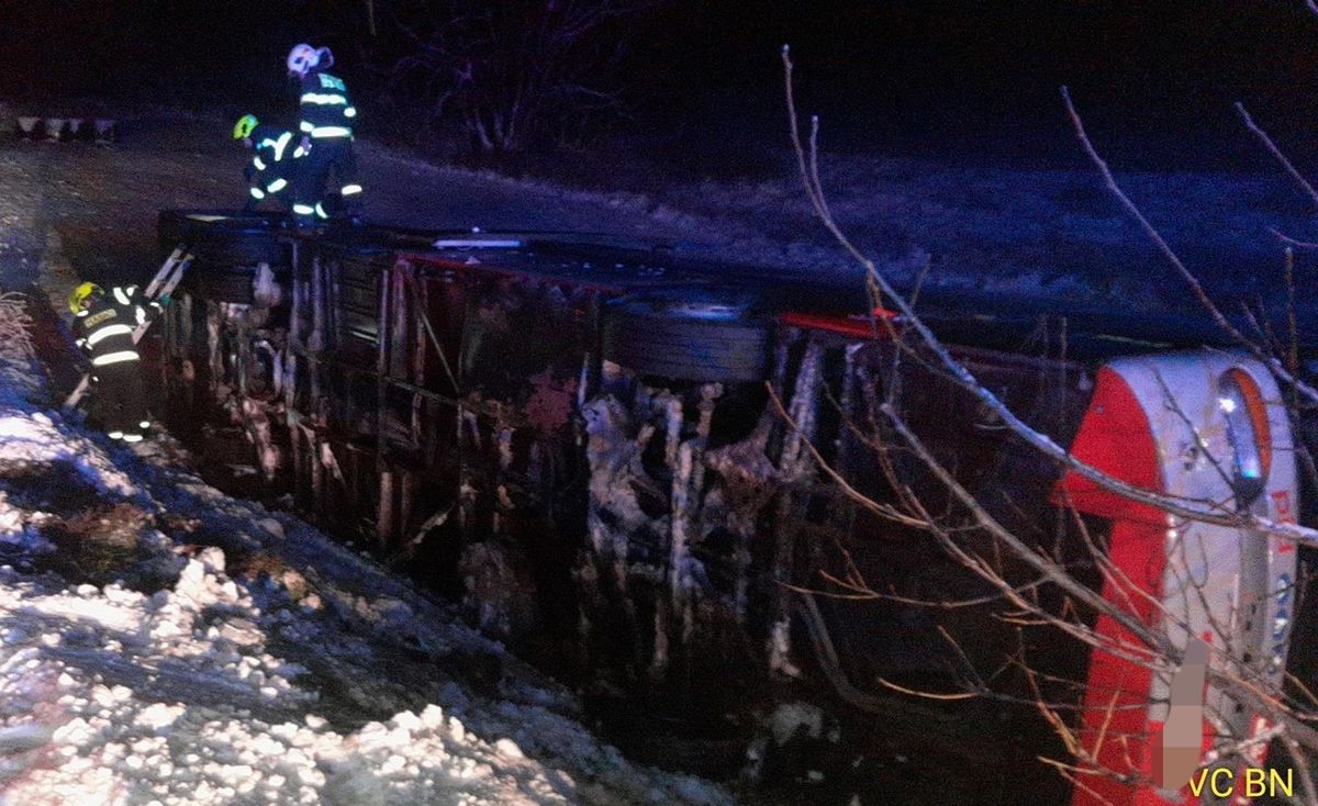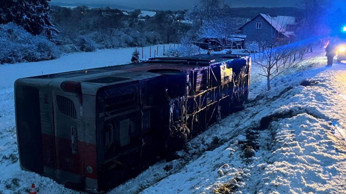 „Autobus skončil v poli na boku, cestovalo v něm 20 lidí,“ informovala mluvčí policie Michaela Richterová.