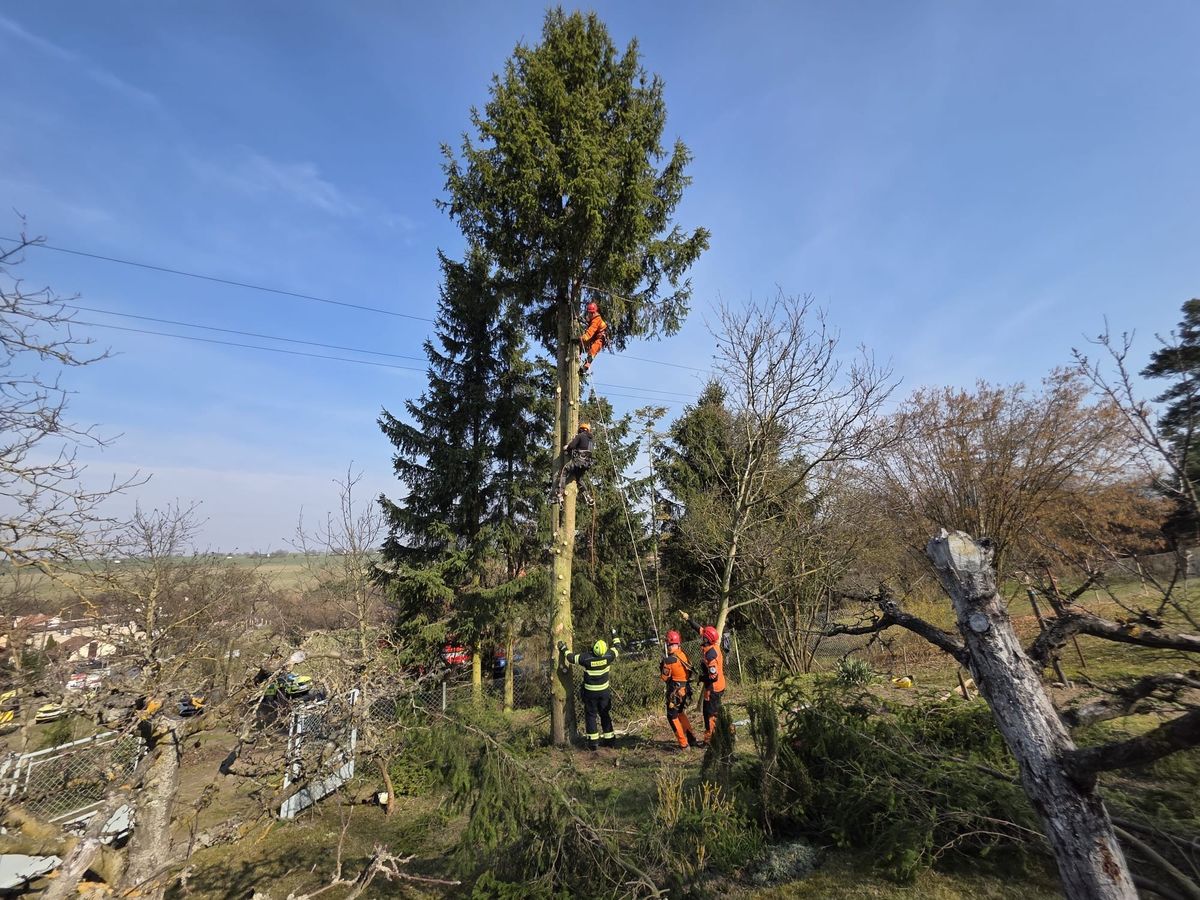 Hasiči na místo vyslali dvě jednotky, včetně lezecké skupiny. Ta musela vylézt na strom a pomocí lanové techniky zraněného muže zachránit. Na zemi ho pak lezci předali do péče záchranářům.