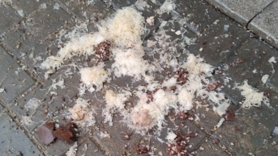 Žena zarputile odmítla, že by z okna vyhodila zelí, ačkoli zbytky zeleniny zůstaly ještě na parapetu a od jejího okna se na fasádě táhla mokrá stopa.