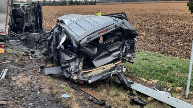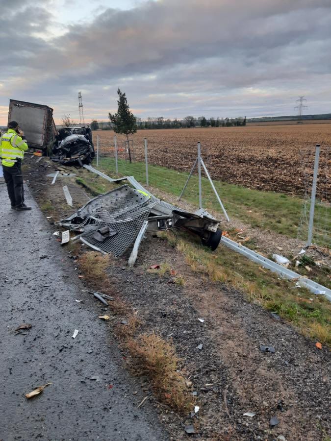 „Z důvodu vyšetřování dopravní nehody je obousměrně uzavřena silnice I/53 u Těšetic. Nákladní vůz tam narazil do osobního auta s přívěsem stojícím na kraji vozovky směrem na Znojmo. Na místě přistával vrtulník záchranné služby. Objízdná trasa přes Dyje, Tasovice, Hodonice,“ informovali policisté na sociální síti X.