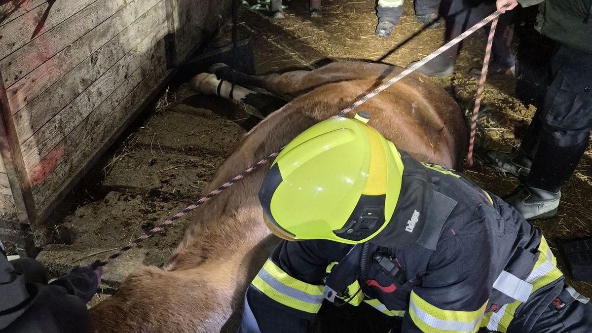 „Po příjezdu hasiči za použití aku vyprošťovacího zařízení, tzv. rozpínáku, zvětšili prostor, ve kterém byla noha uvězněna. Společnými silami se jim podařilo koně bezpečně vyprostit. Jednotky poté zůstaly na místě až do probuzení zvířete, aby v případě potřeby pomohly s jeho postavením. Kůň však tento okamžik zvládl samostatně, bez další asistence,“ poznamenal Martinec.