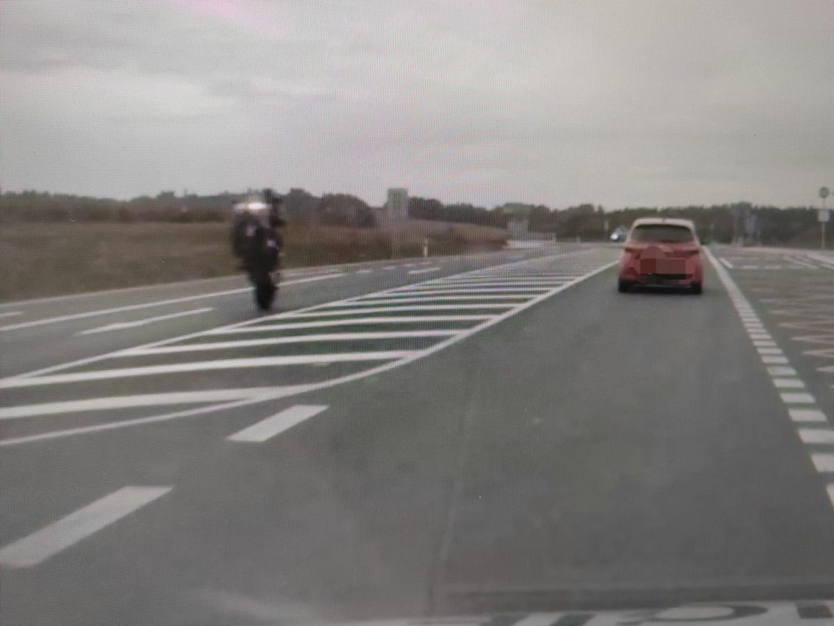 Motorkáře zachytila kamera, jak jede po zadním kole.