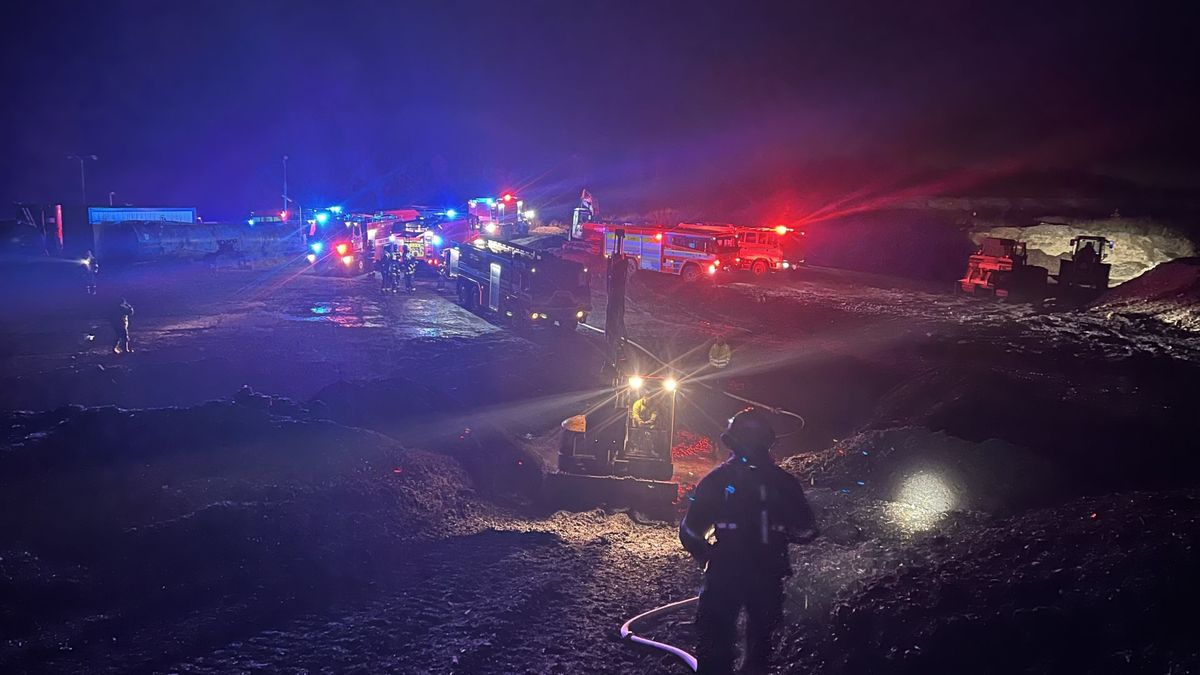 Hasiči dostali hlášení o požáru ve 3:39. V okolí skládky je průjezd omezený kvůli hasičské technice.