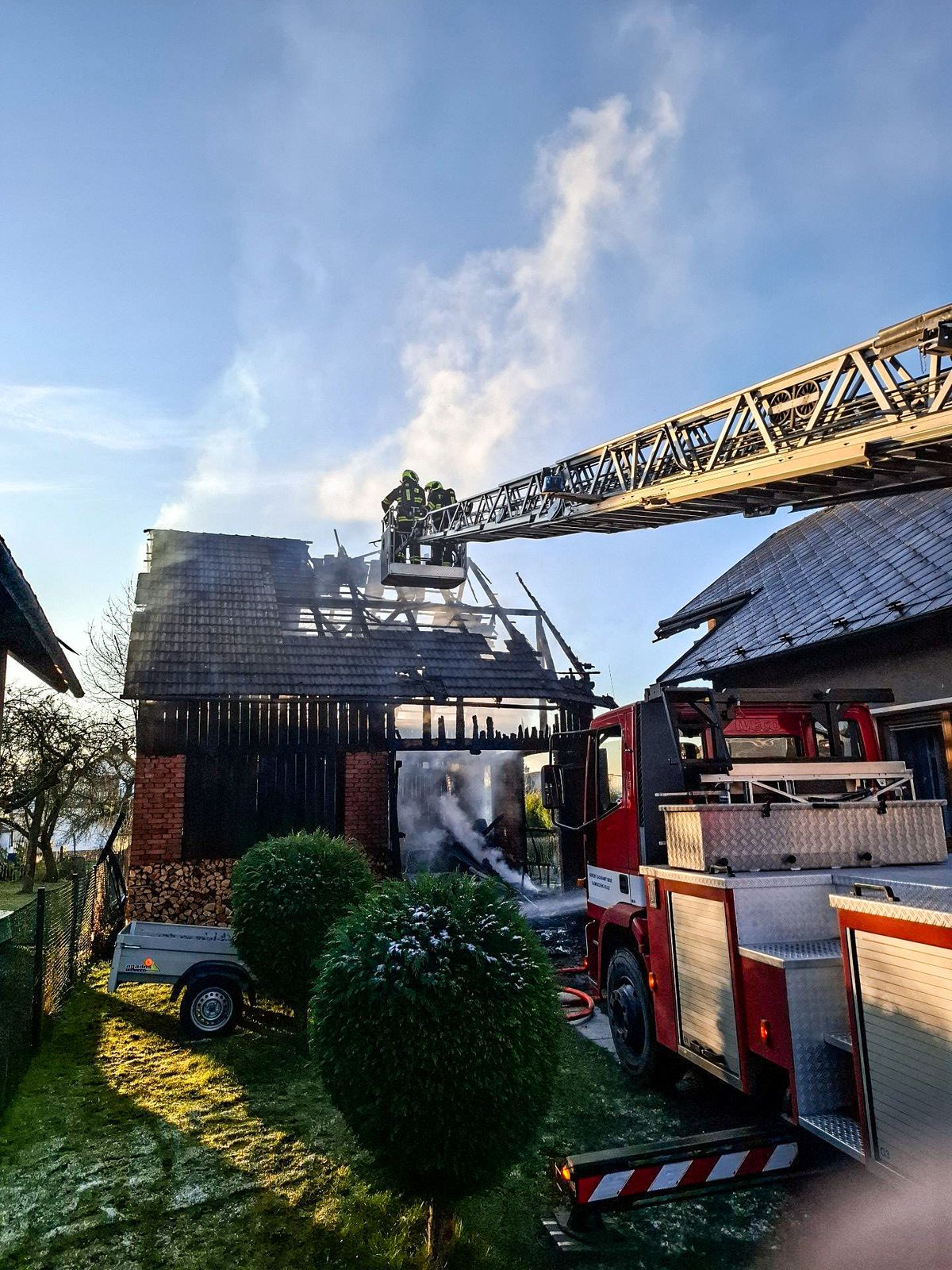 Hasiči podle něj museli zasahovat za využití dýchací techniky. „K rozebírání střechy jsme využili výškovou techniku,“ konstatoval Běhal.