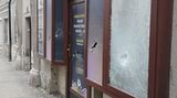 Vandal uštědřil vitríně s politickým obsahem v Jarošovské ulici šest nebo sedm ran zřejmě kladivem a k tomu tam vyobrazil růžovým sprejem kosočtverec.