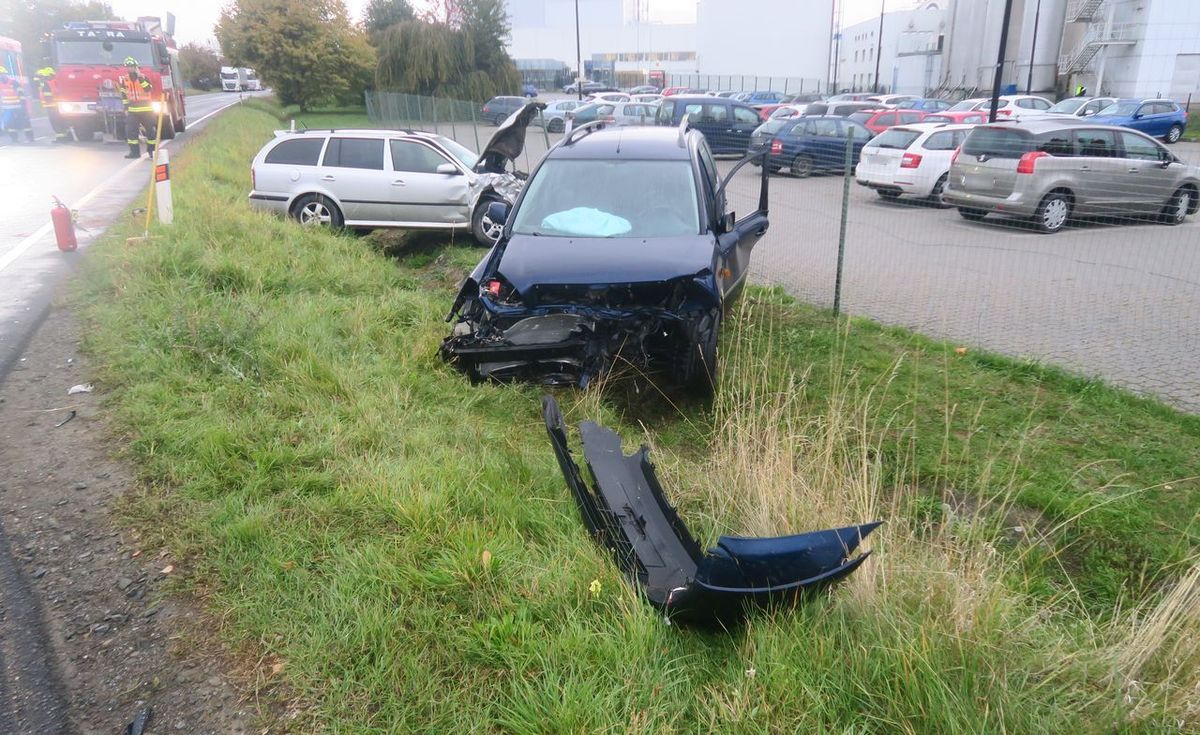 Dvě havarovaná vozidla skončila v příkopu