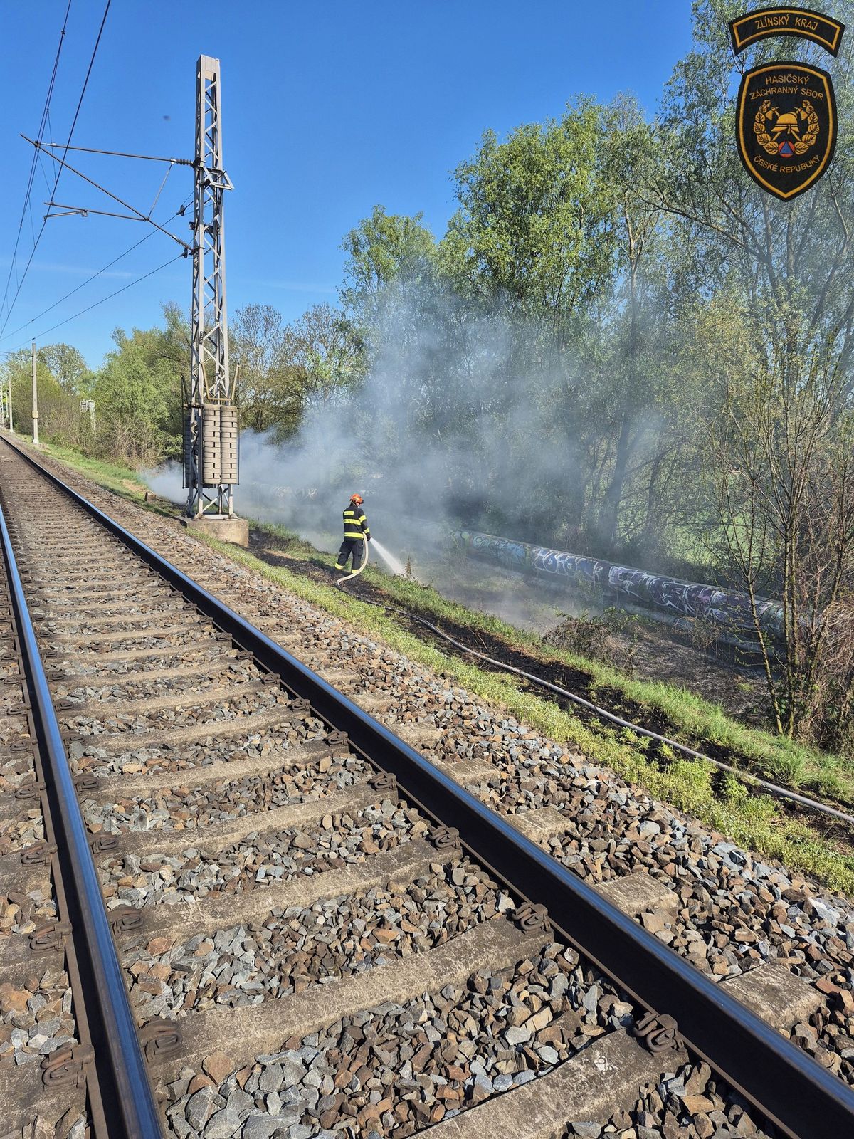 Na místo dorazili také drážní hasiči, kteří spolupracovali při zajištění bezpečnosti železniční infrastruktury. V Otrokovicích požár zasáhl kabel zabezpečovacího zařízení u tratě, což si vyžádalo okamžitá opatření k zajištění provozu.