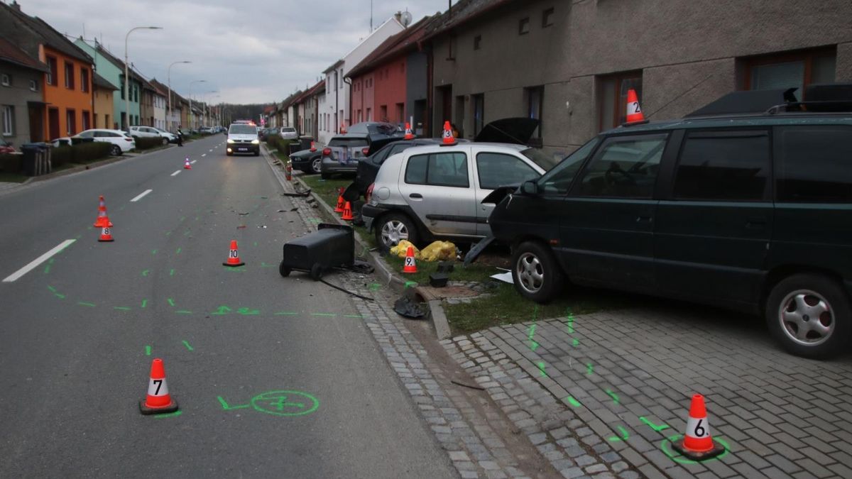 „První kolize se stala v centru města v ulici Komenského, kde řidička vyjela na vyvýšený obrubník a skončila v okrasných dřevinách. Ani to ji však nezastavilo a v jízdě pokračovala směrem k ulici Hrad. Při průjezdu pravotočivou zatáčkou však definitivně ztratila kontrolu nad vozem, vjela na travnatý pás a postupně narazila do čtyř zaparkovaných automobilů,“ přiblížil policejní mluvčí Radomír Šiška.