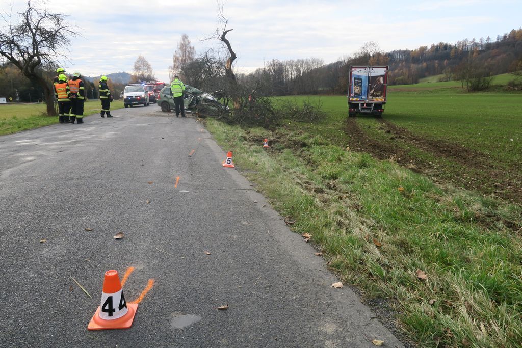 Nehoda se stala v sobotu dopoledne mezi obcemi Loučná nad Desnou a Velké Losiny. „Řidič osobního auta předjížděl stejným směrem jedoucí nákladní automobil. Při předjíždění nejprve pravým bokem svého vozu narazil do iveca, přičemž dostal smyk, vyjel mimo silnici, kde poté narazil do stromu,“ sdělila v pondělí policejní mluvčí Marie Šafářová.