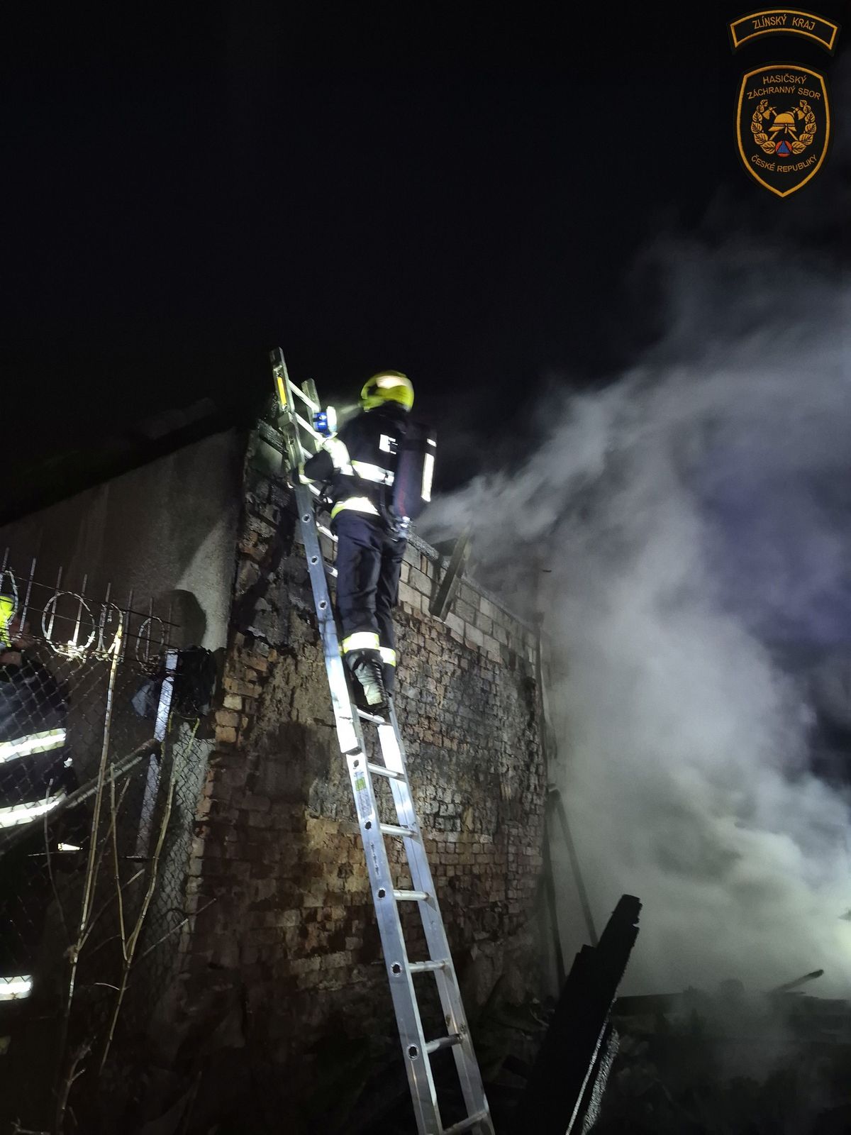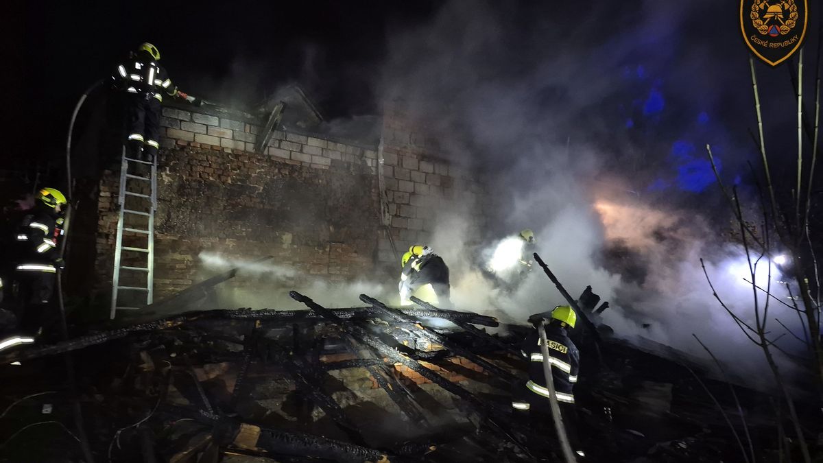 „K likvidaci požáru, který zasáhl celý objekt, použili hasiči tři hasební proudy vody. Vzhledem k rozsáhlému poškození objektu a jeho případnému zřícení, tak záchranáři konstrukci raději strhli a postupně dohasili skrytá ohniska,“ uvedla mluvčí krajských hasičů Lucie Javoříková.