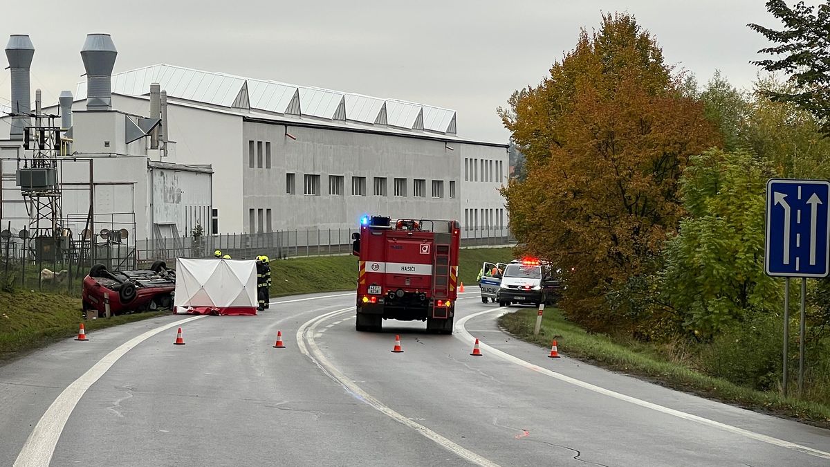 Řidič na místě nehody zemřel, spolujezdkyni převezli záchranáři s lehčím zraněním do nemocnice.