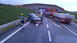 „Ke střetu došlo pravděpodobně návěsem nákladní auta. Náraz odmrštil Škodu Roomster do příkopu, kde auto skončilo na střeše,“ řekla policejní mluvčí Iveta Kopecká.