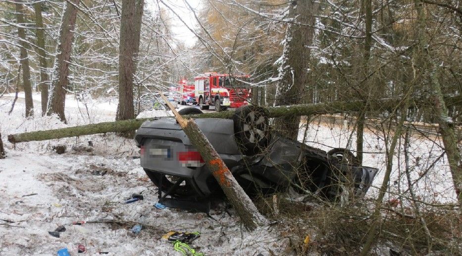 Auto skončilo po nárazu do stromu na střeše, řidiče vyprostili policisté.