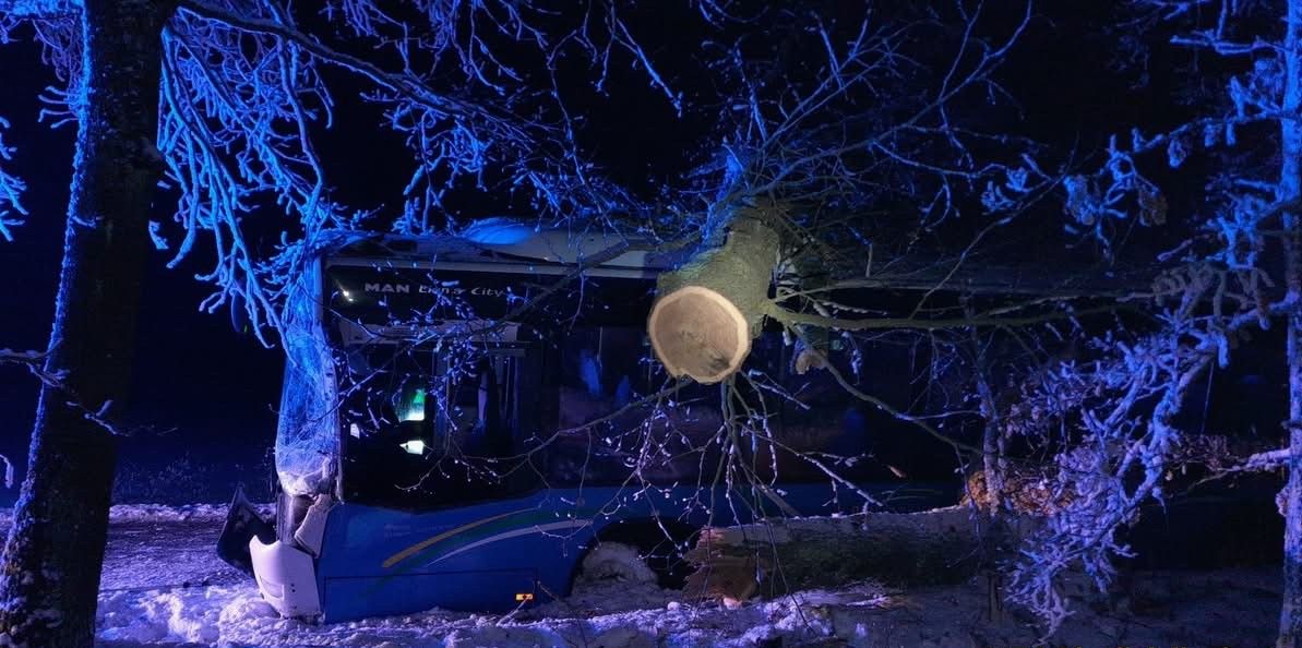 „Osmačtyřicetiletá řidička linkového autobusu při průjezdu pravotočivou zatáčkou sjela do levého příkopu a následně narazila do vzrostlého dubu, který se zlomil a spadl na střechu autobusu,“ uvedl policejní mluvčí Ondřej Hodan s tím, že autobus byl prázdný.
