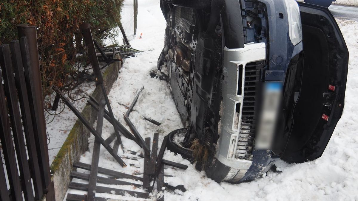 „Řidička vjela na krajnici, která byla pokryta mokrým sněhem. Vozidlo vyjelo mimo komunikaci, kde narazilo do oplocení blízké zahrady a převrátilo se na bok,“ informovala ve čtvrtek policejní mluvčí Aneta Przepiorová.