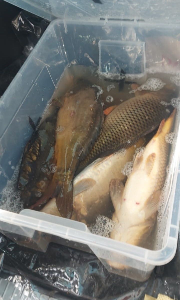 Cizinci z Litvy odnášeli ulovené kapry do plastových nádob do auta.