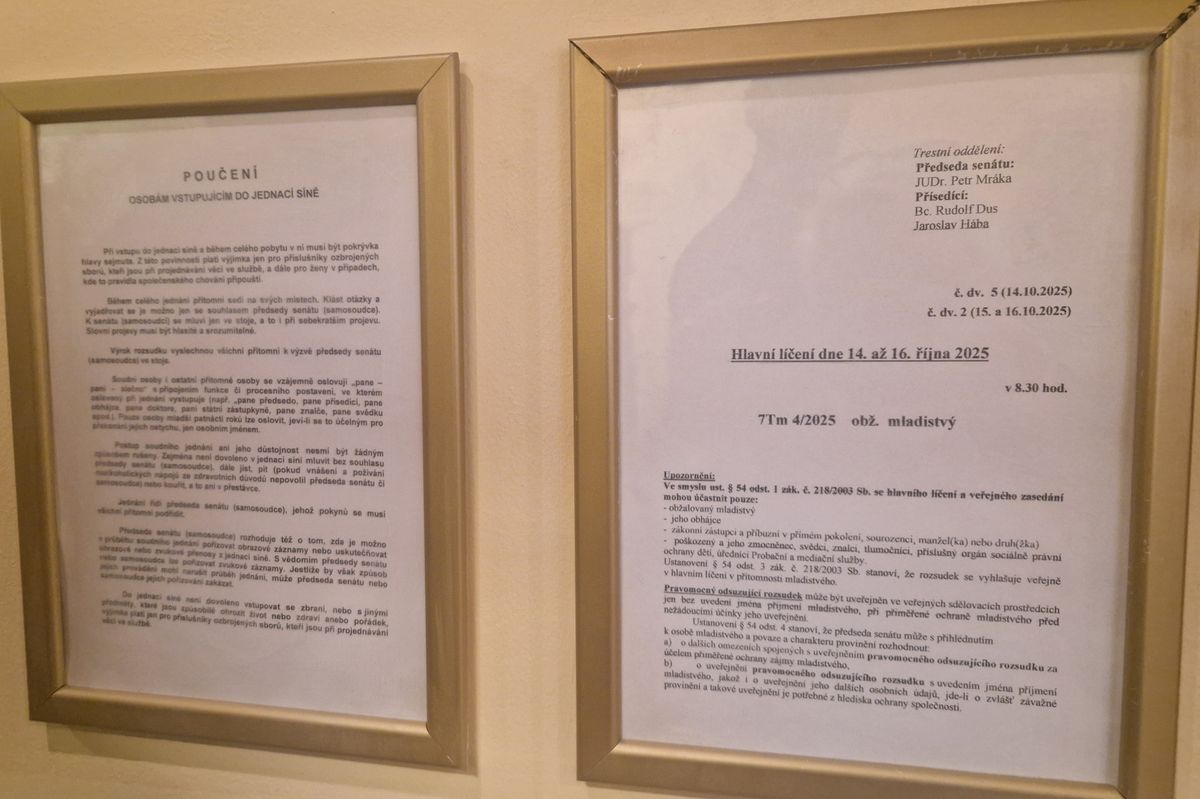 Ve 13:00 bude vypovídat znalkyně. Obžalovaný mladík u soudu vůbec nevypovídal.
