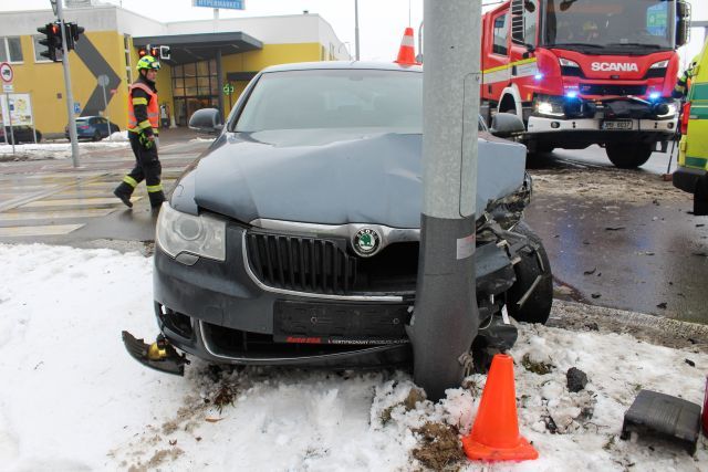 Škodovka byla po nárazu odhozena na sloup veřejného osvětlení