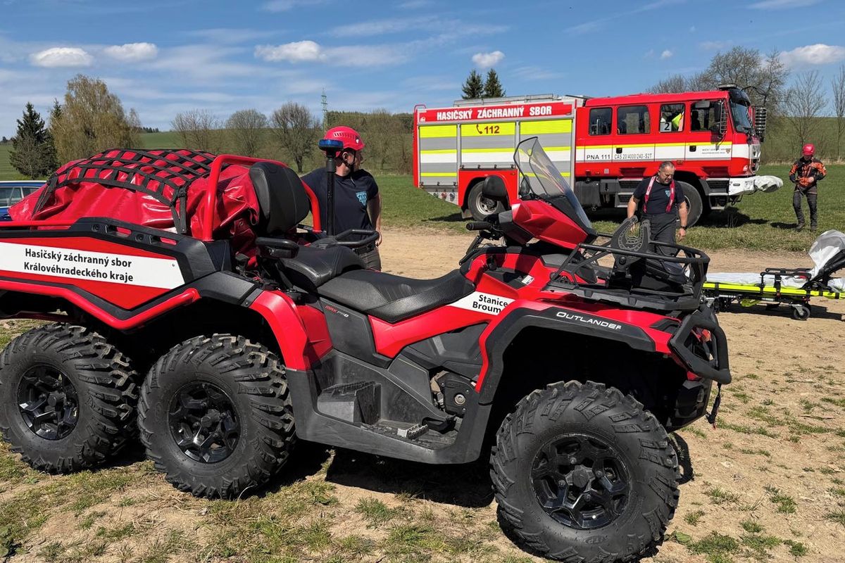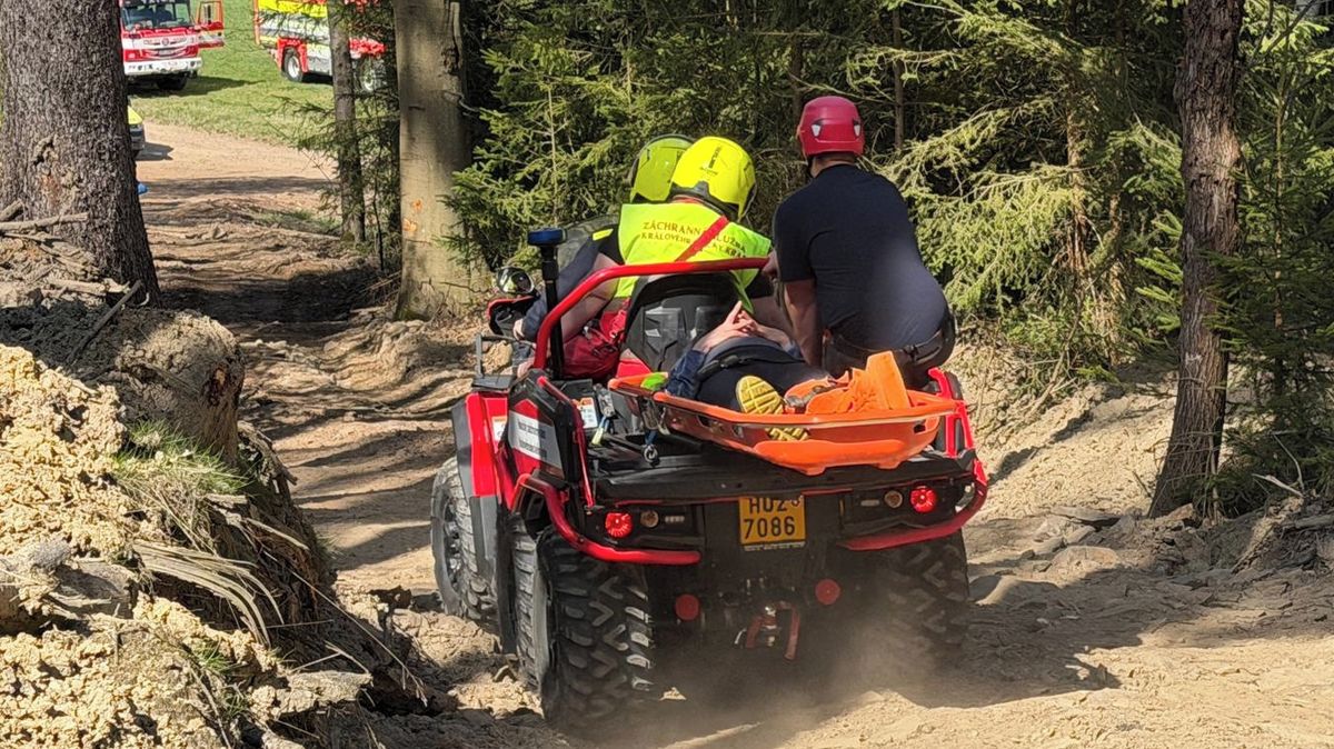 „Na místo události jsme přijeli přibližně 20 minut po jejím vyhlášení a po rychlém průzkumu bylo rozhodnuto o transportu pomocí terénní šestikolky,“ napsali k zásahu hasiči.
