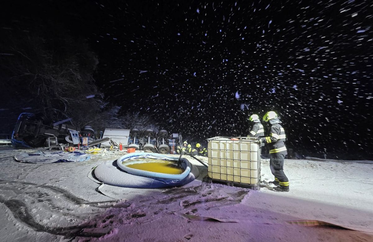 Hasiči z havarované cisterny přečerpávali uniklé kapaliny