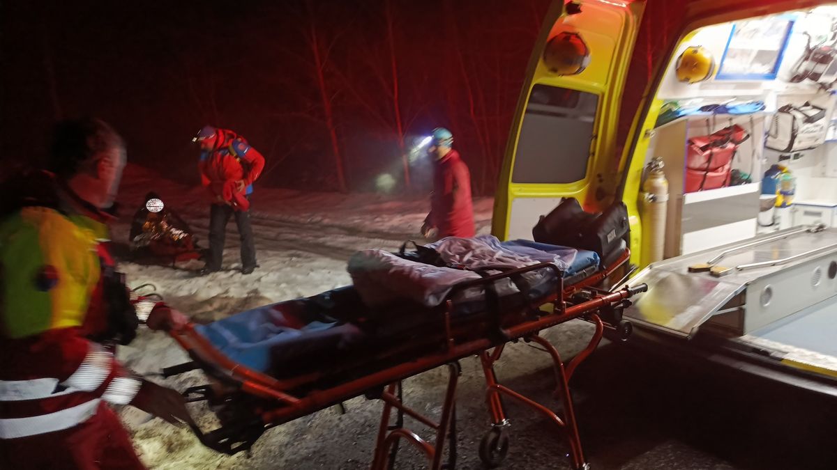 Do téhož zdravotnického zařízení byl později předán i dvaačtyřicetiletý muž. „V namrzlém terénu upadl během sestupu z horské chaty Kamenitý a způsobil si poranění dolní končetiny. I v tomto případě museli záchranáři odstavit sanitku a dojít ke zraněnému v terénu pěšky. Ošetřili poranění a zajistili pacientovi tepelný komfort. Pomocí saní byl poté přesunut k příjezdové cestě do sanitního vozidla,“ dodal mluvčí záchranářů.