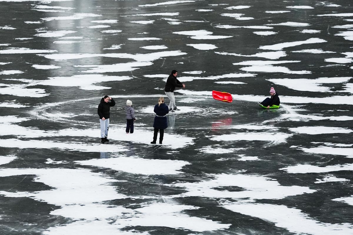Zamrzlá Vodní nádrž Labská lákala návštěvníky Špindlerova Mlýna.