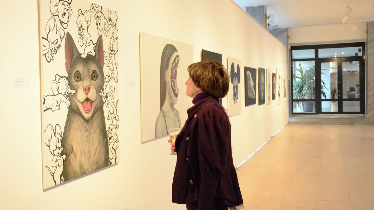 Výtvarně čerpá především z popisného hyperrealismu, stejně jako z komiksové zkratky a výrazné barevnosti pop-artu. Na lázeňské kolonádě vedoucí k výstavním prostorům visel v den vernisáže na poutači plakát divadelního představení Farma zvířat. Dílo je inspirováno stejnojmennou knihou George Orwella, která alegoricky karikuje totalitní systém. A v něm prasata vyjadřují analogii stranického vedení.
