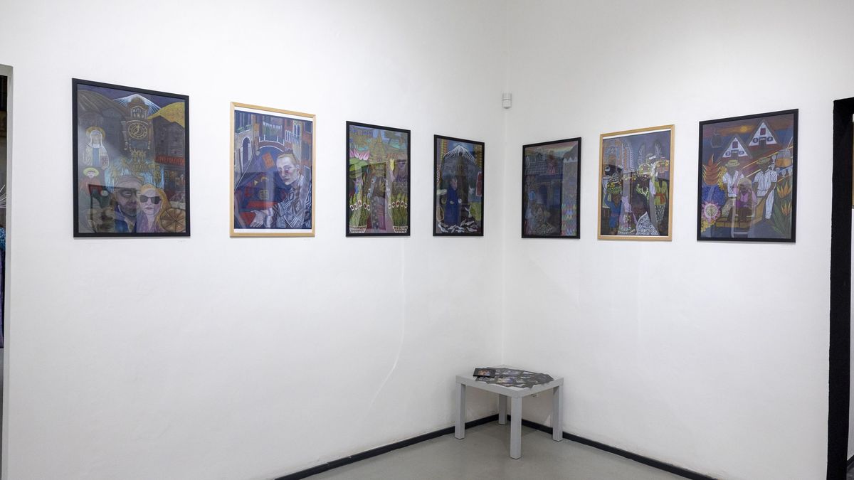 Ty mají často zavřené oči a vznášejí se kdesi v časoprostoru. Na jiných obrazech jsou krajiny s úplňkem, tvorové podobní motýlům nebo bytosti zakuklené a čekající na své zrození. Jedno ze zákoutí na výstavě patří i abstraktním malbám, které vznikaly vylitím barevných tuší na podklad a intuitivním dotvářením.