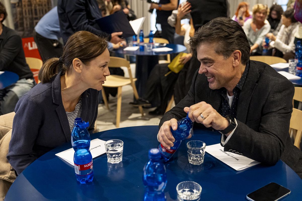 Nominační tisková konference k 32. ročníku divadelních cen Thálie 15. října 2025. Na snímku Andrea Elsnerová a Marcel Rošetzký