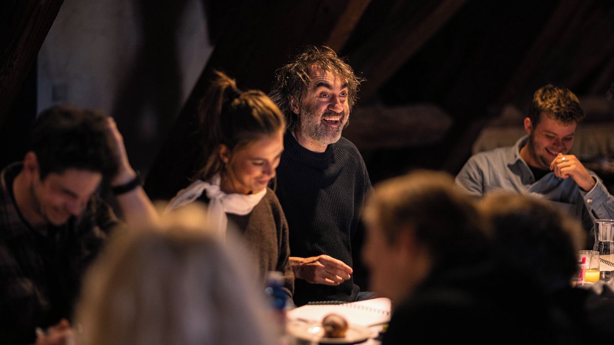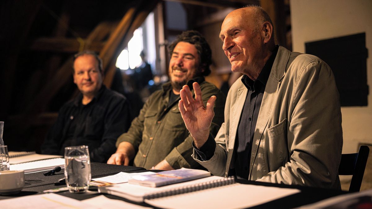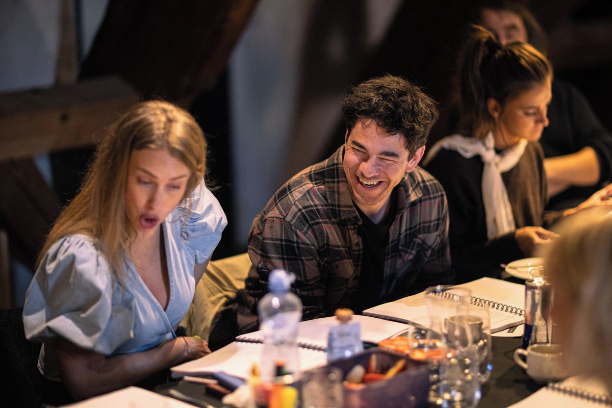 Letní shakespearovské slavnosti 2026, 1. čtená zkouška Komedie omylů. Jakub Kohák a překladatel Martin Hilský.