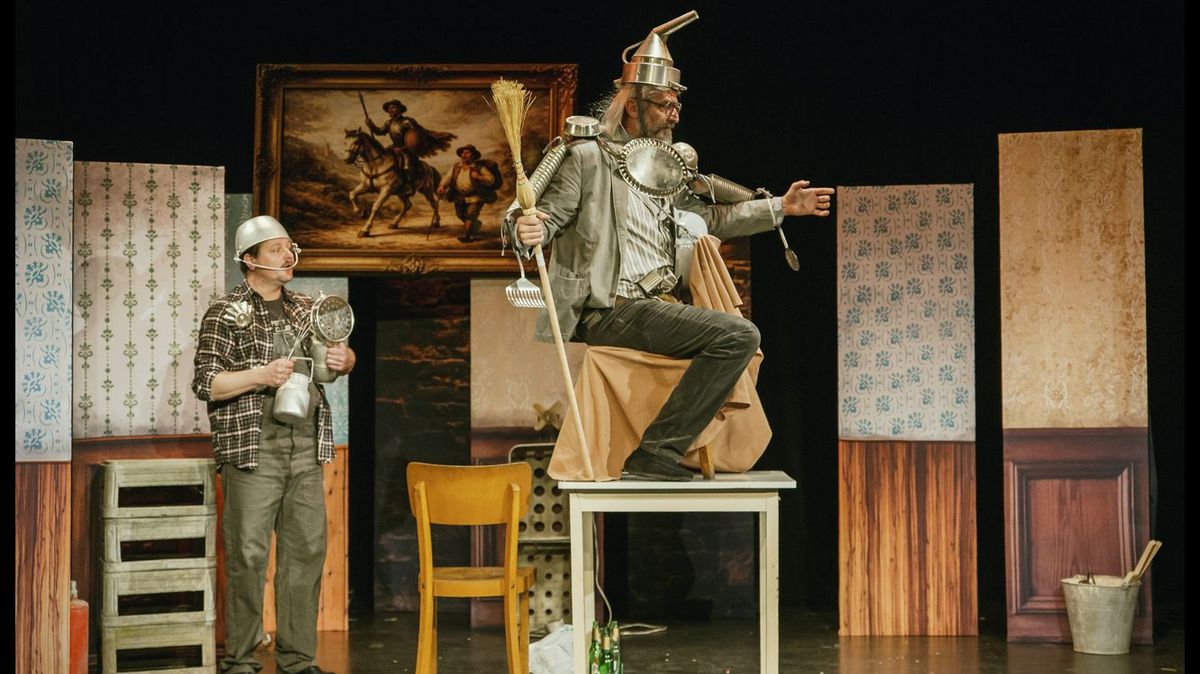FOTO: Roman Zach a Ondřej Bauer v představení Důmyslný rytíř Don Quijote a jeho soumar Pemza