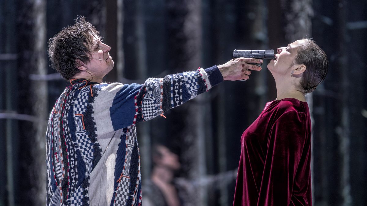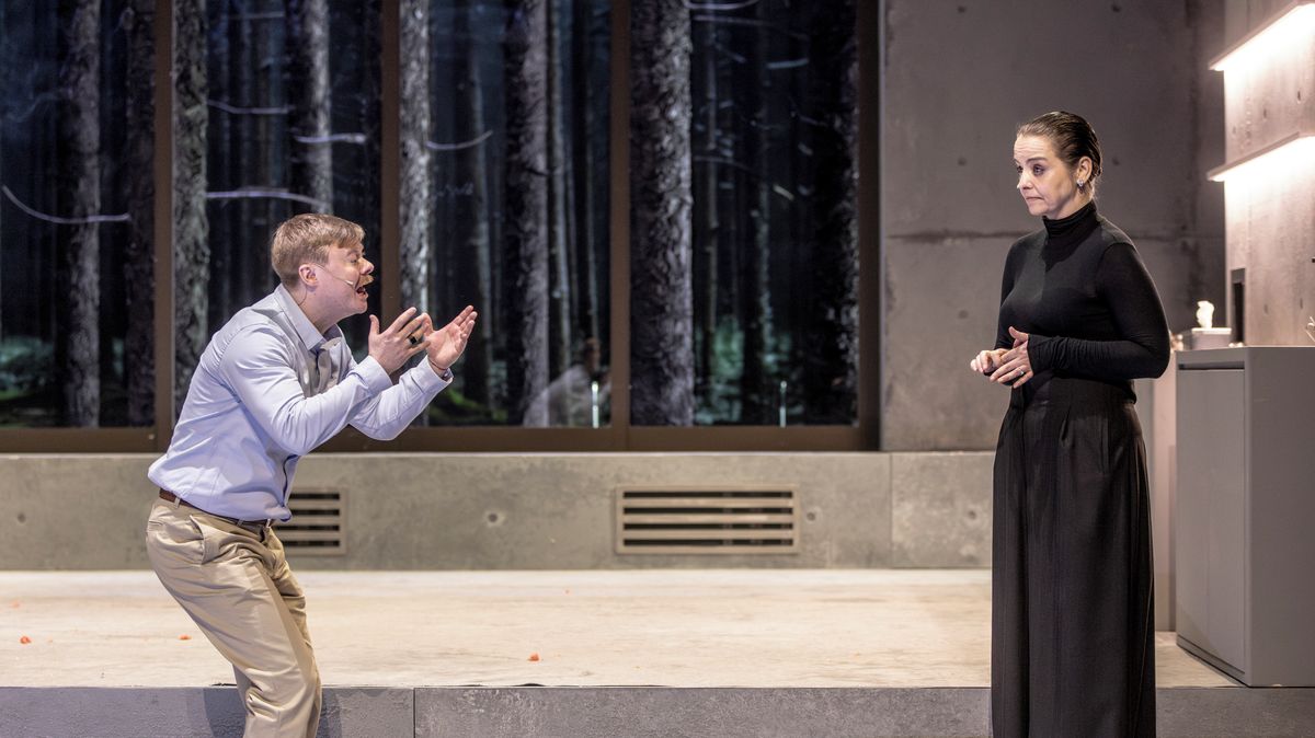 Záběr z představení Heda Gablerová v Národním divadle Praha. Hedu v něž ztělesňuje charismatická Pavla Beretová.