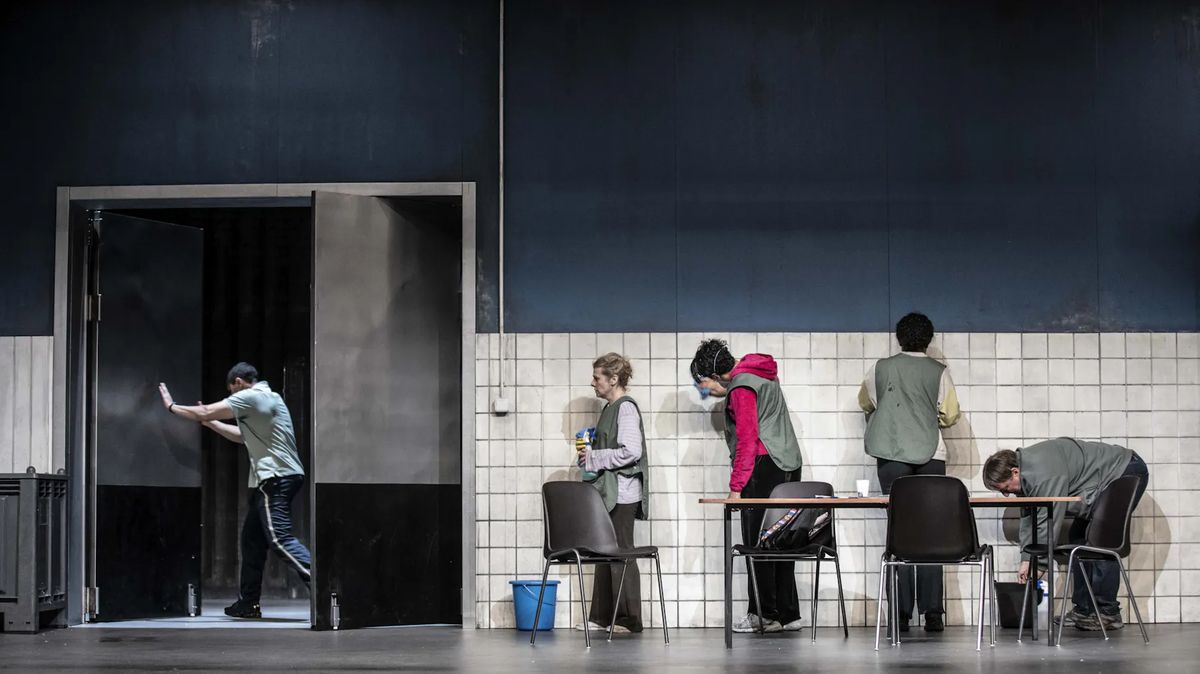 Inscenace přenáší diváky do prostředí noční směny v balírně masných výrobků. Skupina brigádníků, uklízeček a uklízečů najatých agenturou, zde v monotónním rytmu plní nekonečné úkoly, střídají se u strojů a během krátkých, jen desetiminutových přestávek stihnou maximálně šálek čaje a pár útržkovitých vět.