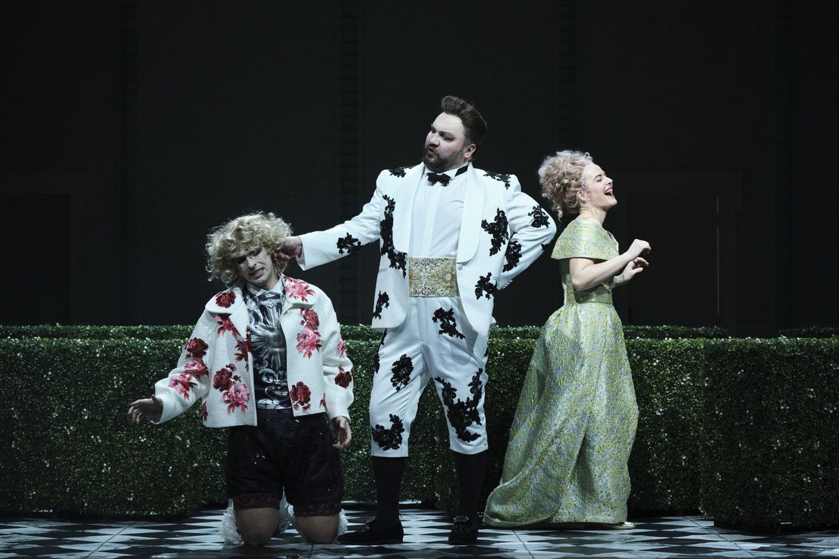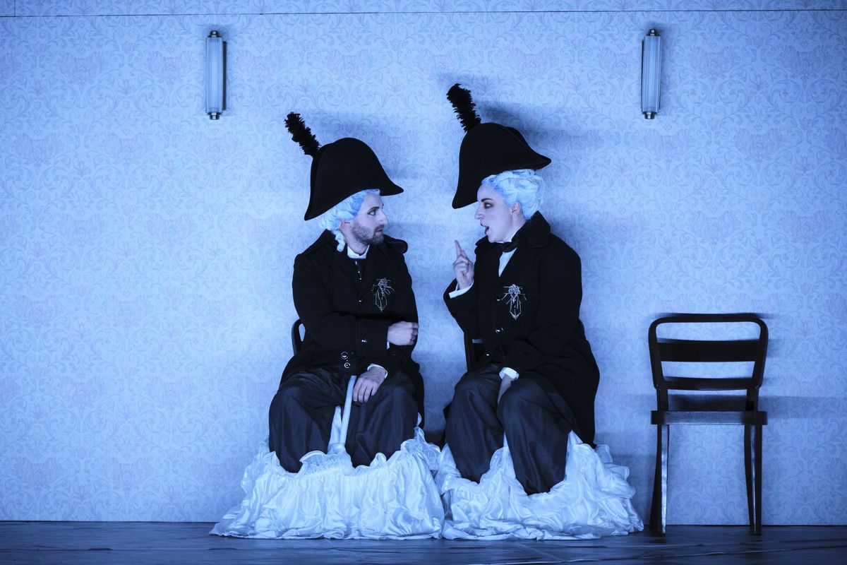 Postavy Händelovy Agrippiny mají dráždivou genderovou nejednoznačnost podpořenou fantaskními kostýmy. Zleva Tadeáš Hoza (Pallante) a Monika Jägerová (Narciso)