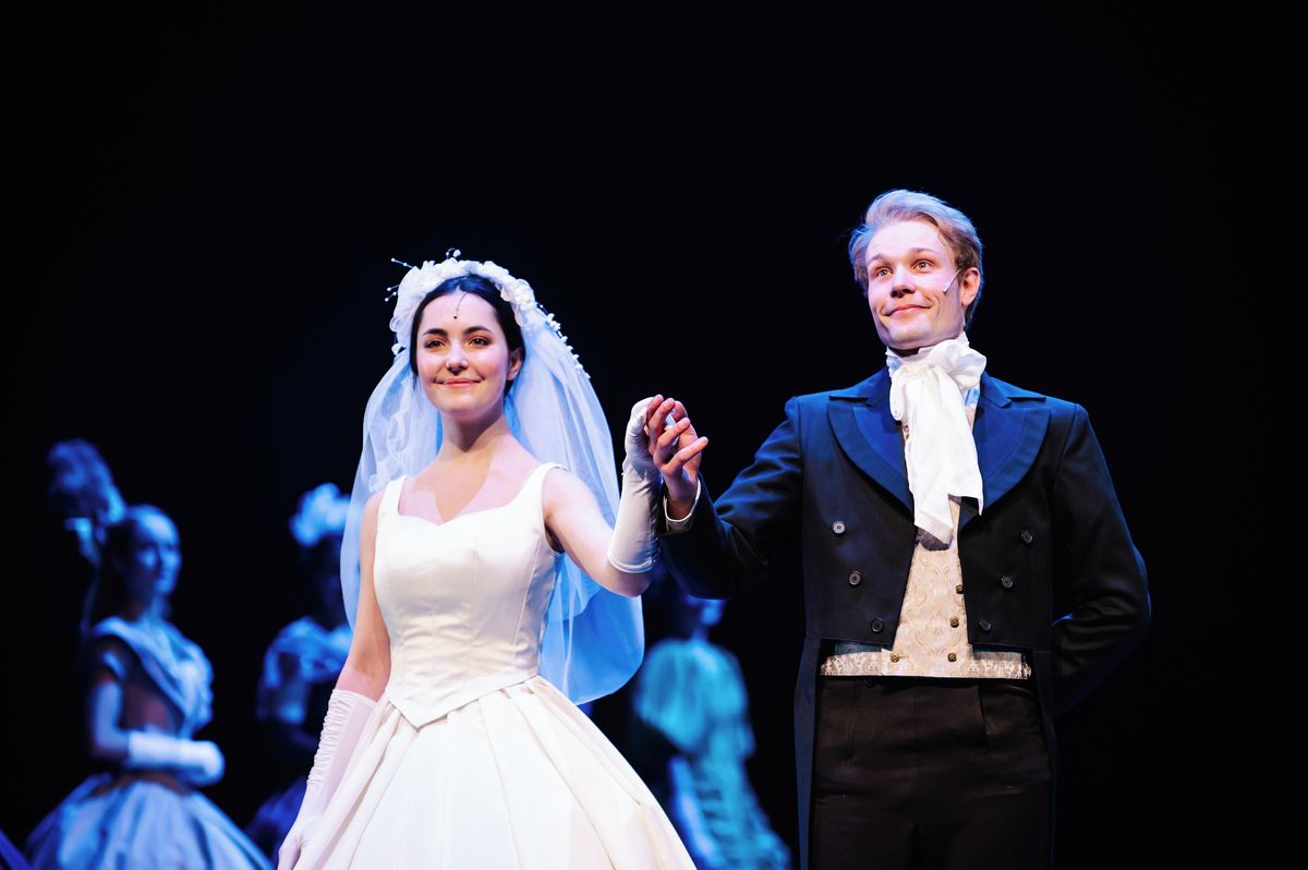 Na snímku Esther Mertová (Cosette) a Jakub Mauer (Marius)